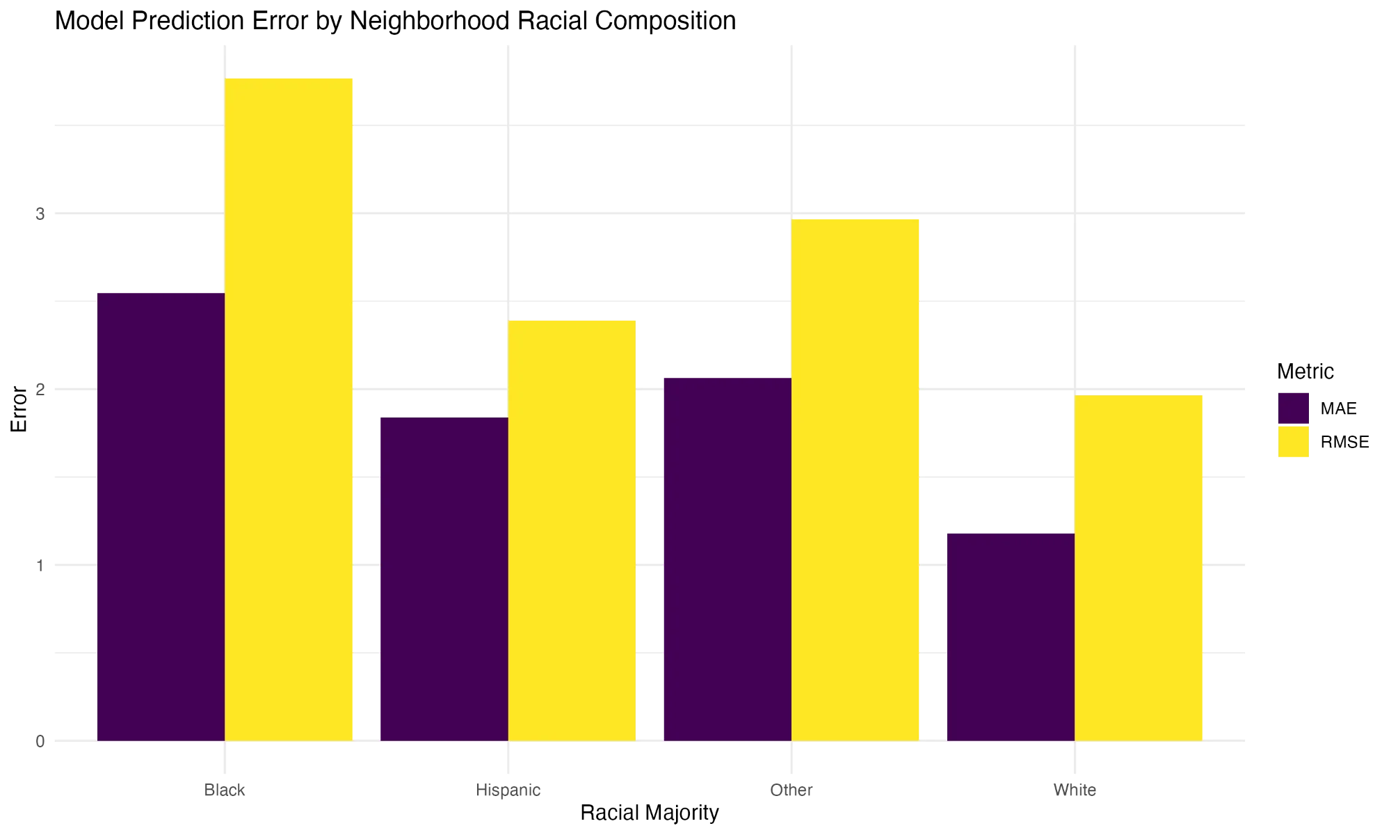 Model error is higher in majority-Black neighborhoods — we need to monitor this.