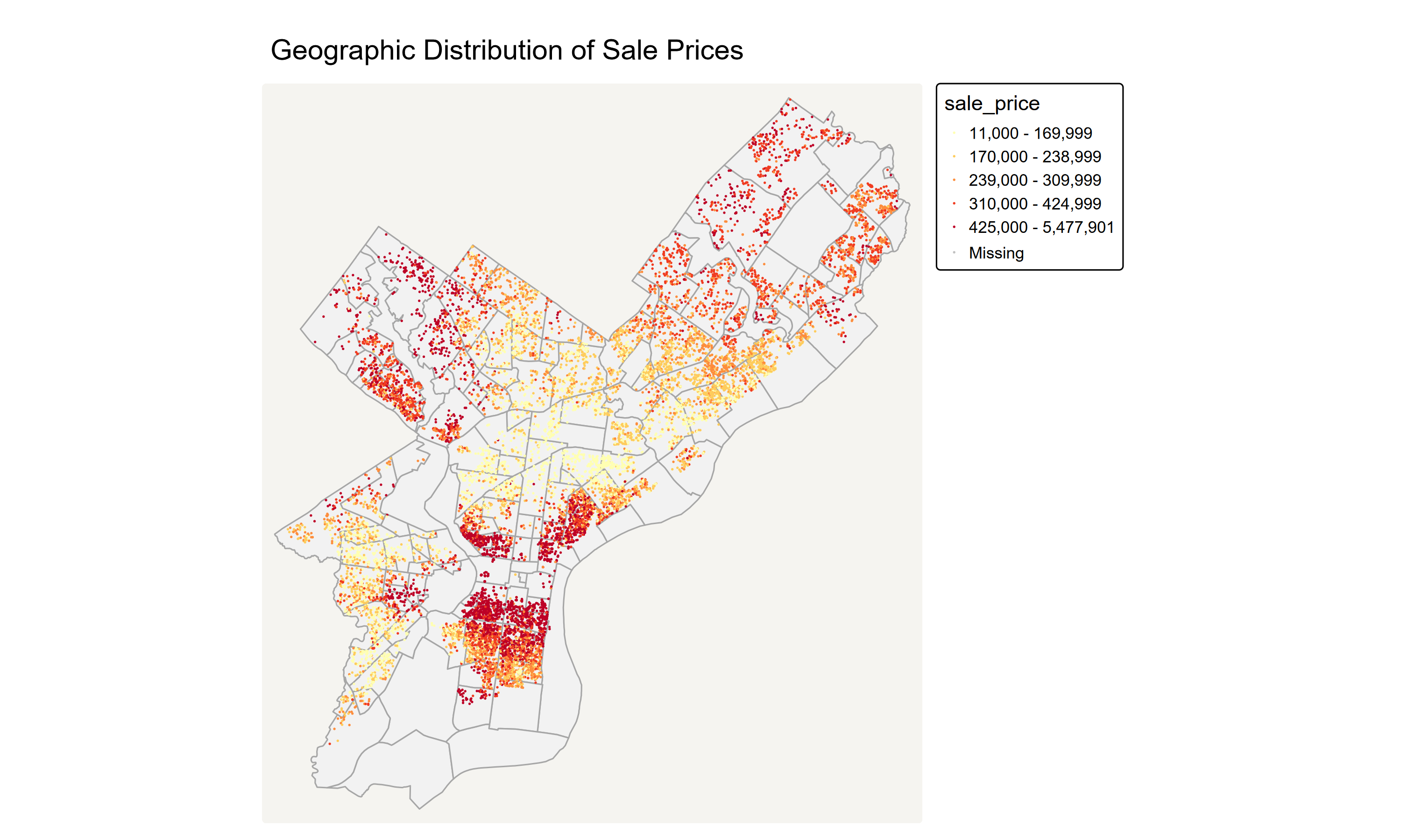Sale price is place-dependent in Philadelphia, mostly due to neighborhood qualities.