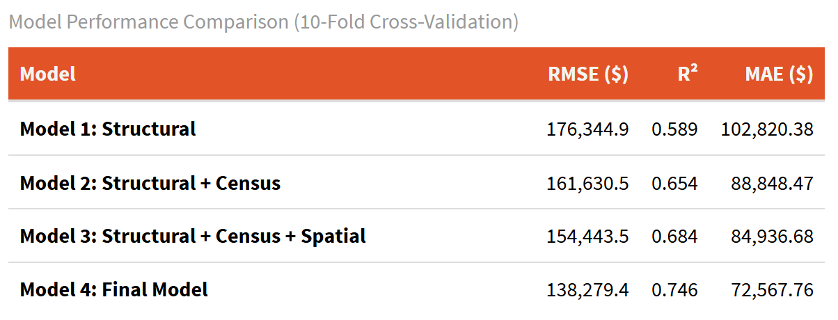 R² = 0.746 → Explains 75% of variance in home prices.