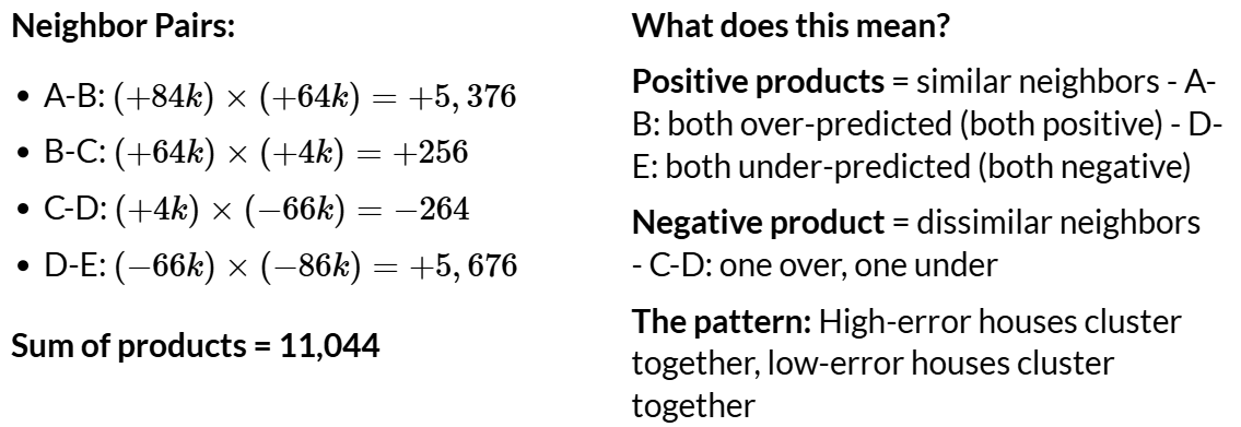 Intuition: When I’m above/below average, are my neighbors also above/below average?