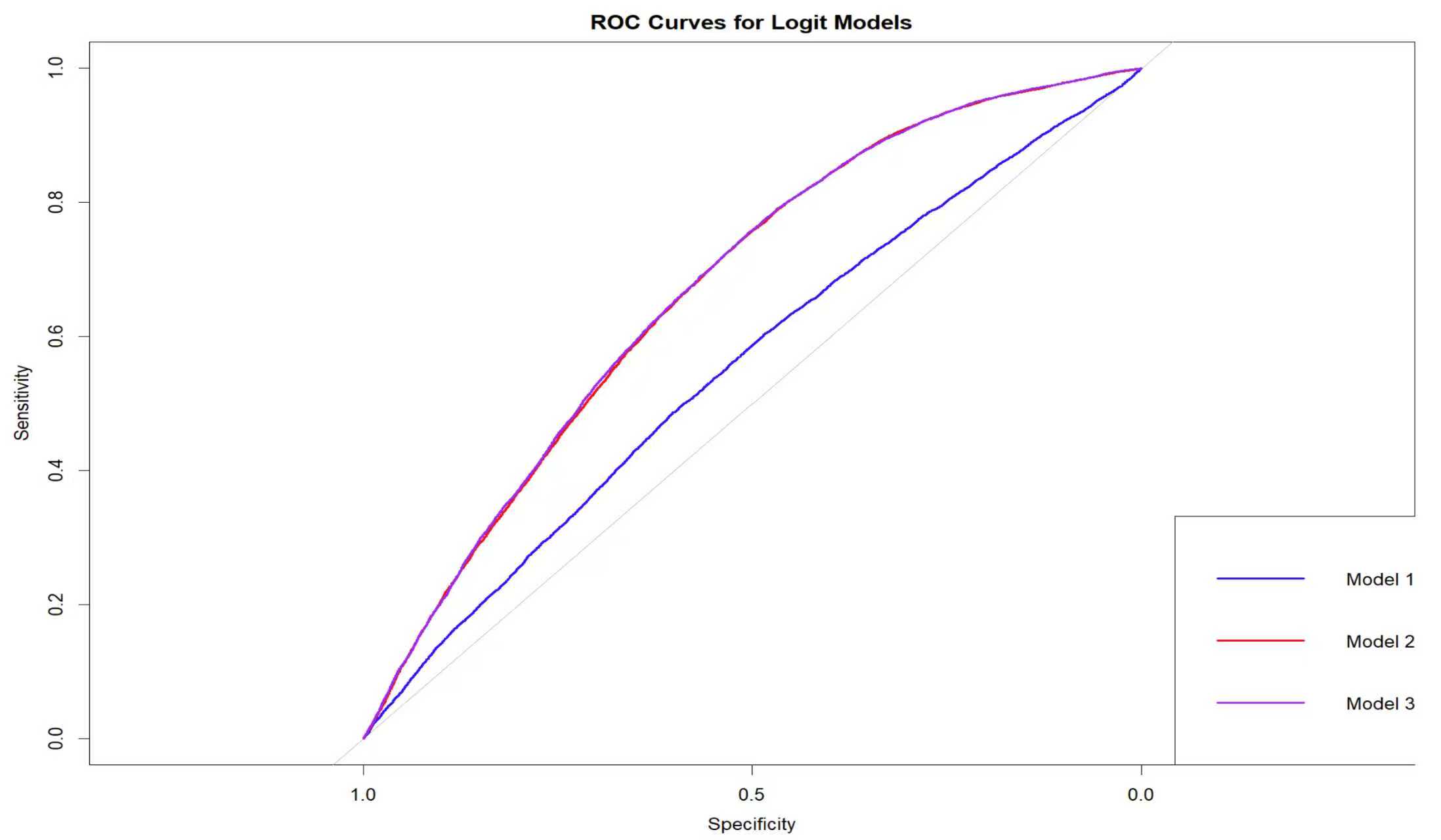 | Logit Model 2 | + Neighborhood context (ACS tract) | 0.670 |