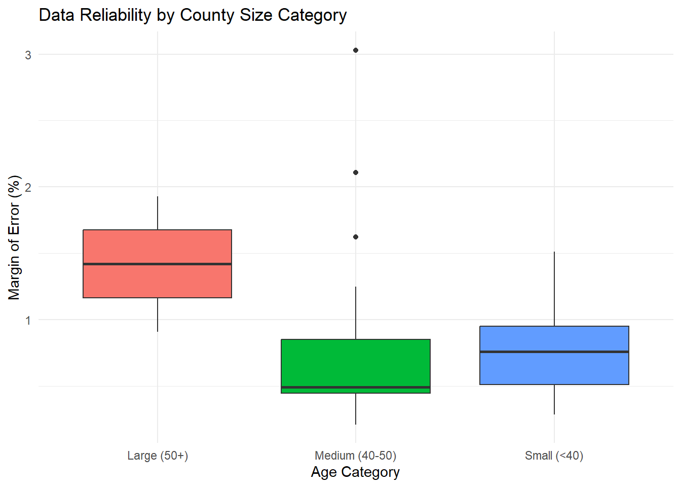 County | Median Income | Margin of Error | CV (%) | Reliability |